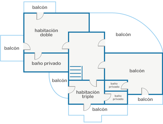 Hay una habitación doble, una doble y una triple y todas tienen baño o ducha.
