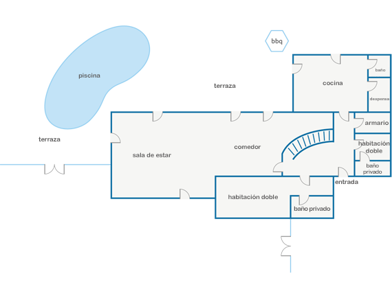 En la planta baja la villa tiene dos dormitorios con camas de pareja, y en la primera planta tiene un dormitorio con una cama de pareja y dos dormitorios con camas individuales, con la posibilidad de juntas formando camas de pareja. Todos en suite.